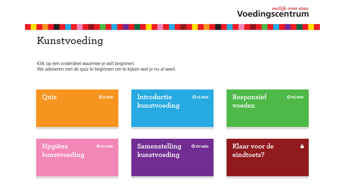 Het doorlopen van de e-learning Kunstvoeding is gratis en duurt inclusief toets circa 1 uur en 40 minuten. Daarna ben jij de expert op het gebied van kunstvoeding.